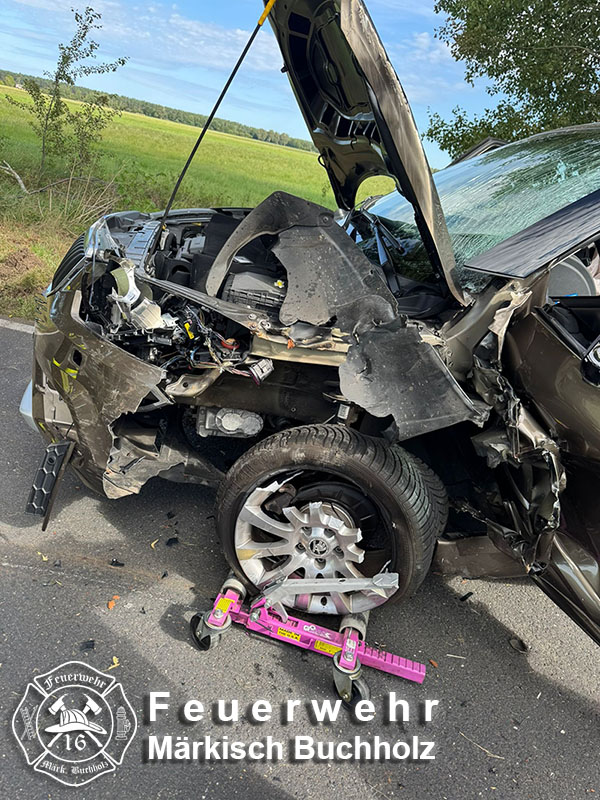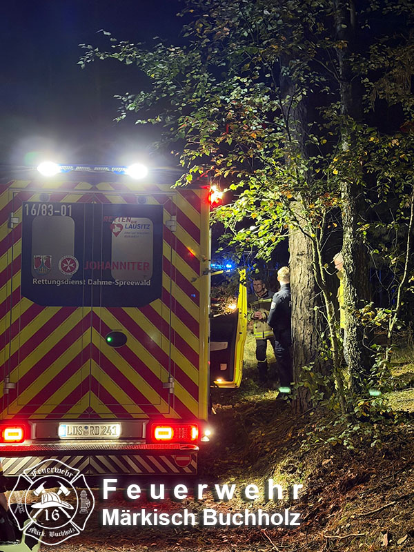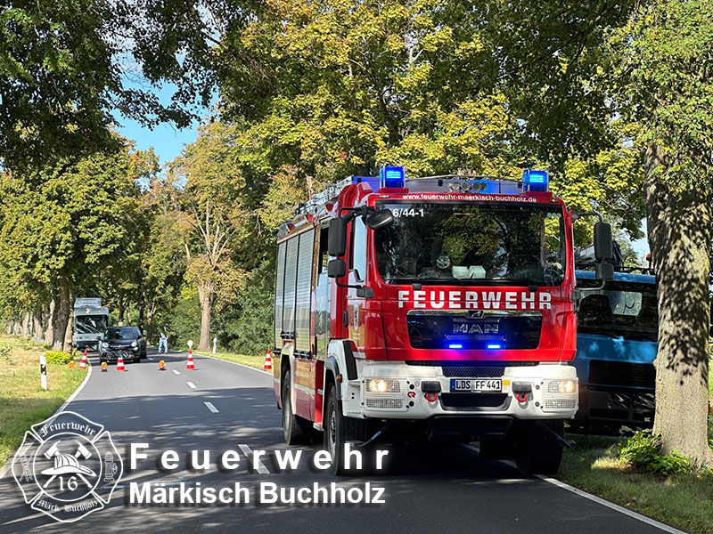 Alarmierte Kräfte: FF Märkisch Buchholz, FF Halbe, FF Birkholz, FF Münchehofe, FF Hermsdorf, FF Leibsch, ELW-1 Amt 16, ABM 16/1, RTW Leibsch, RTW Teupitz, RTW Golßen, NEF Teupitz, POL