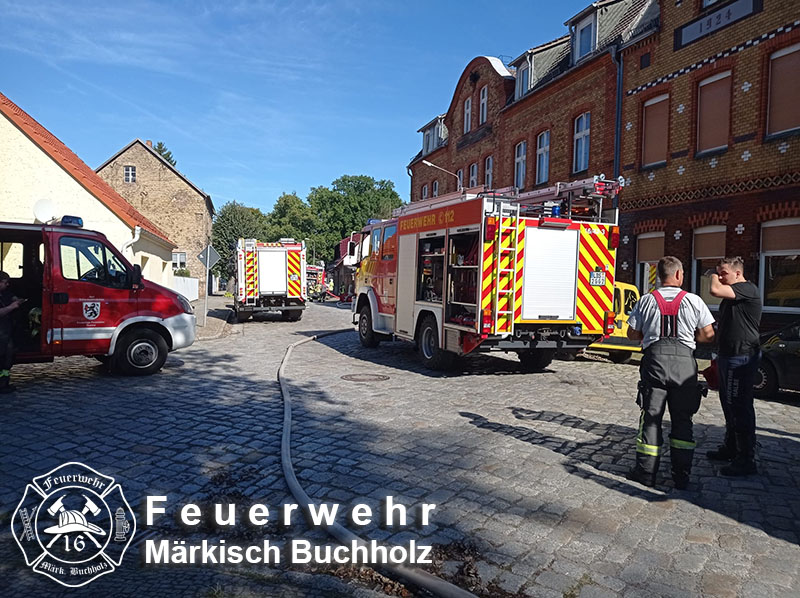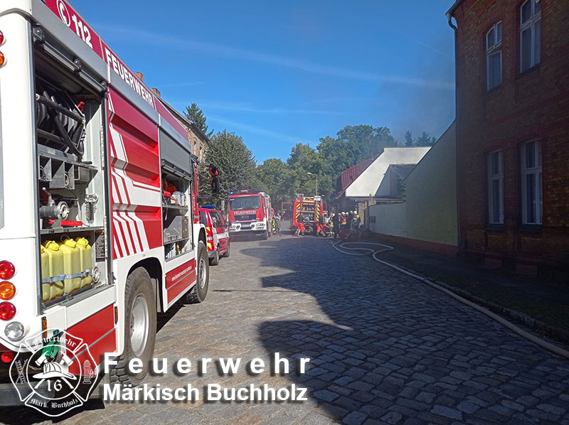 Alarmierte Kräfte: FF Märkisch Buchholz, FF Birkholz, FF Neuendorf a. See, FF Groß Eichholz (LOS), FF Kehrigk (LOS), FF Limsdorf (LOS), FF Bugk (LOS), POL